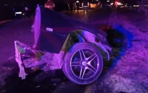 “Mercedes” 2 yerə bölündü – Axşamkı qəzanın videosu