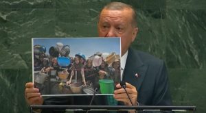Türkiyə Prezidenti Rəcəb Tayyib Ərdoğan BMT Baş Assambleyasında çıxışı zamanı Qəzzada aclıq çəkən qadınların fotosunu nümayiş etdirib.