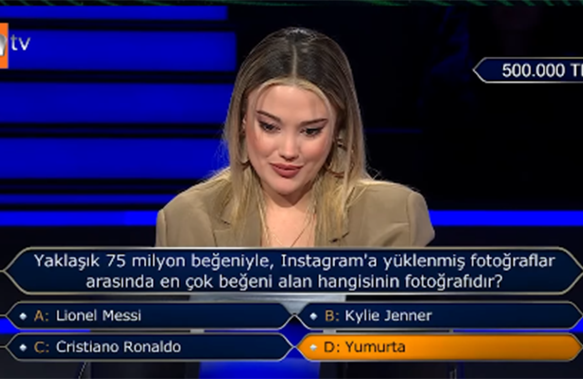 Türkiyədə yayımlanan “Kim milyoner olmak ister?” verilişində iştirakçının 500.000 TL-lik (19 min 705 AZN) suala “yumurta” cavabını verməsi sosial şəbəkələrdə müzakirələrə
